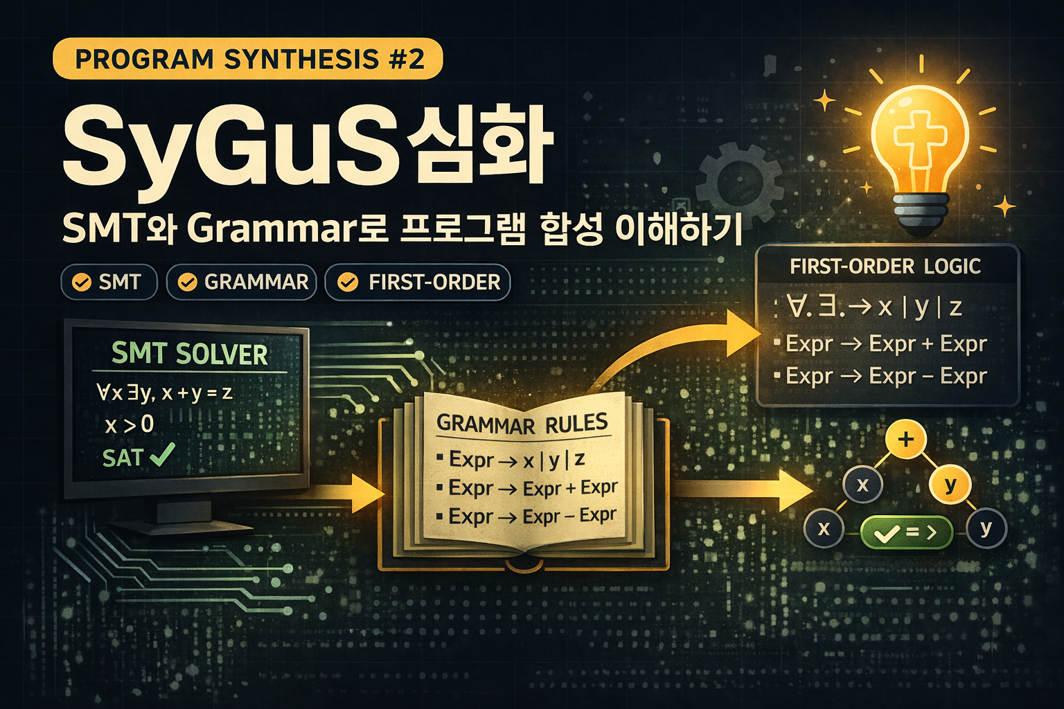 Program Synthesis 시리즈 2편 – First-Order Logic, SMT, Grammar를 통해 SyGuS가 실제로 어떻게 동작하는지 이해하기